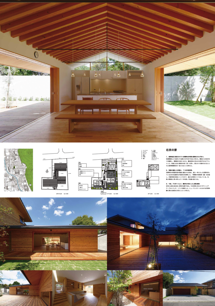 | 作品説明 | 閑静な住宅地に建つ個人住宅である。良好な景観を借景とし、敷地の高低差を生かして異なる性質の庭を建物周囲に計画している。その外部空間と内部空間に連続性を持たせることで豊かな空間を作り出している。 |