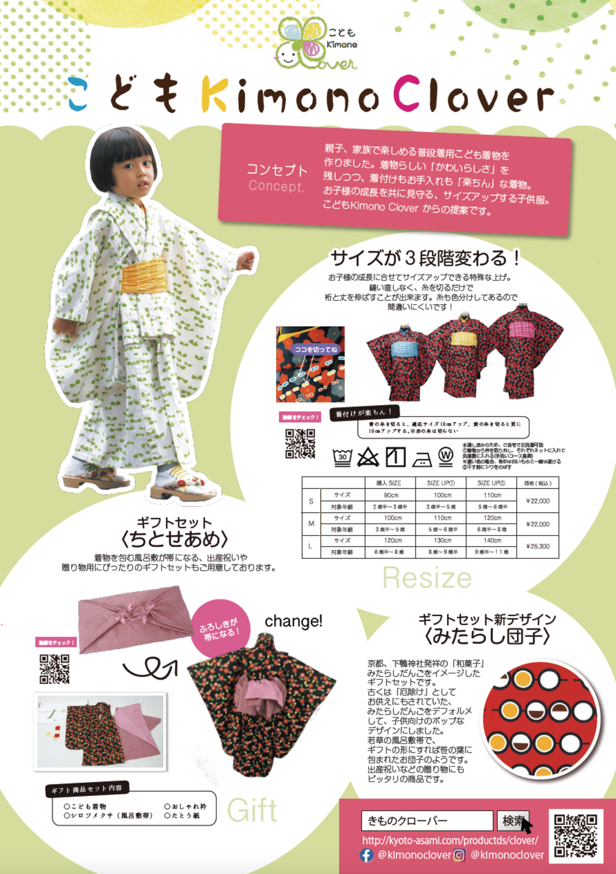 | 作品説明 | 子供の成長に寄り添うギフトセットです。3歳前後からお楽しみいただける普段着用こども着物は、お子様の成長に合わせサイズアップが可能。着付けも簡易に出来、ご自宅で洗濯いただけます。さらにセットを包む風呂敷は広げると帯としてご利用いただけます。出産お祝いや贈り物にお勧めです。 |