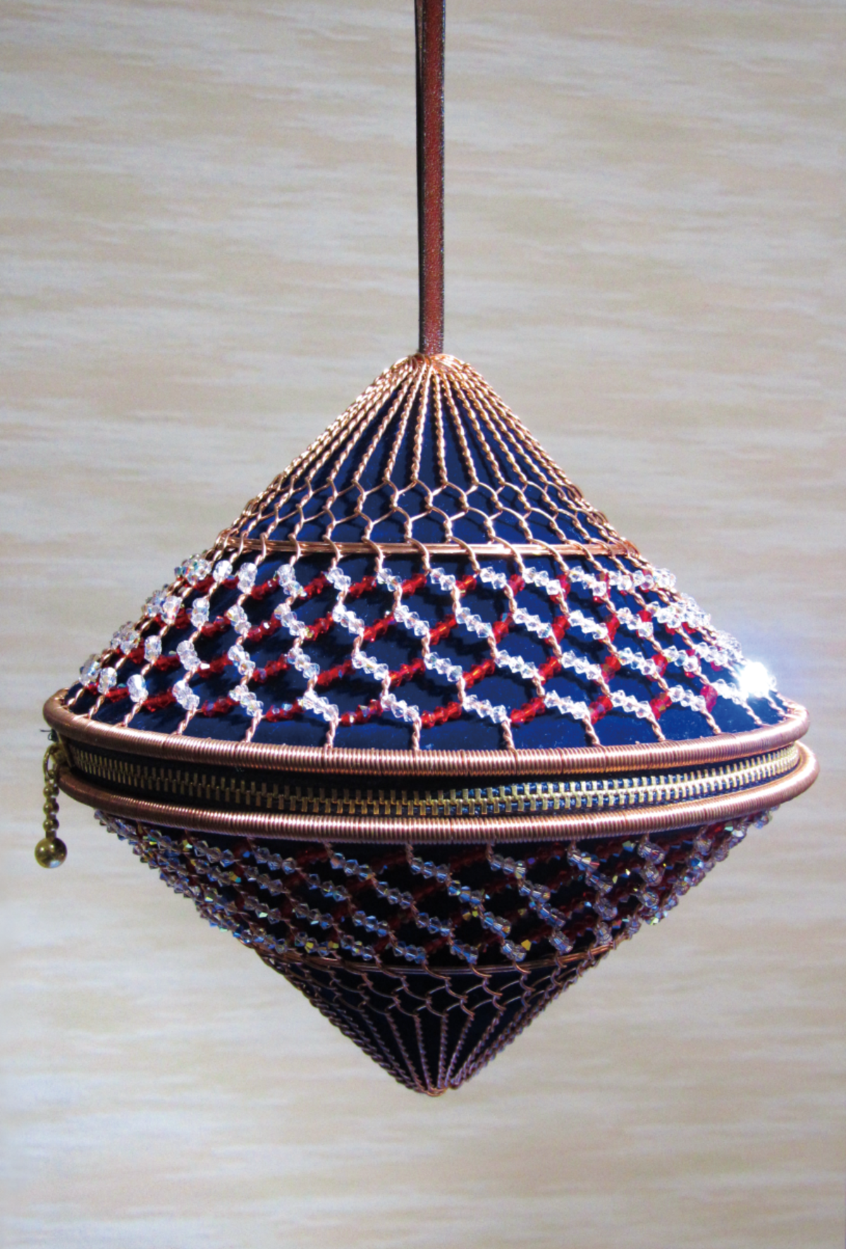 | 作品説明 | 伝統的な手仕事である京金網には、応用力と柔軟性があります。時代の変化やライフスタイルに調和した形を作りだす事ができます。その特性を生かしバックとしてもユニークなデザインを目指しました。また、針金の素材の銅は、年月の経過とともに深い色合いに変化していく為、表現の変化を楽しみながら使う事ができます。 |