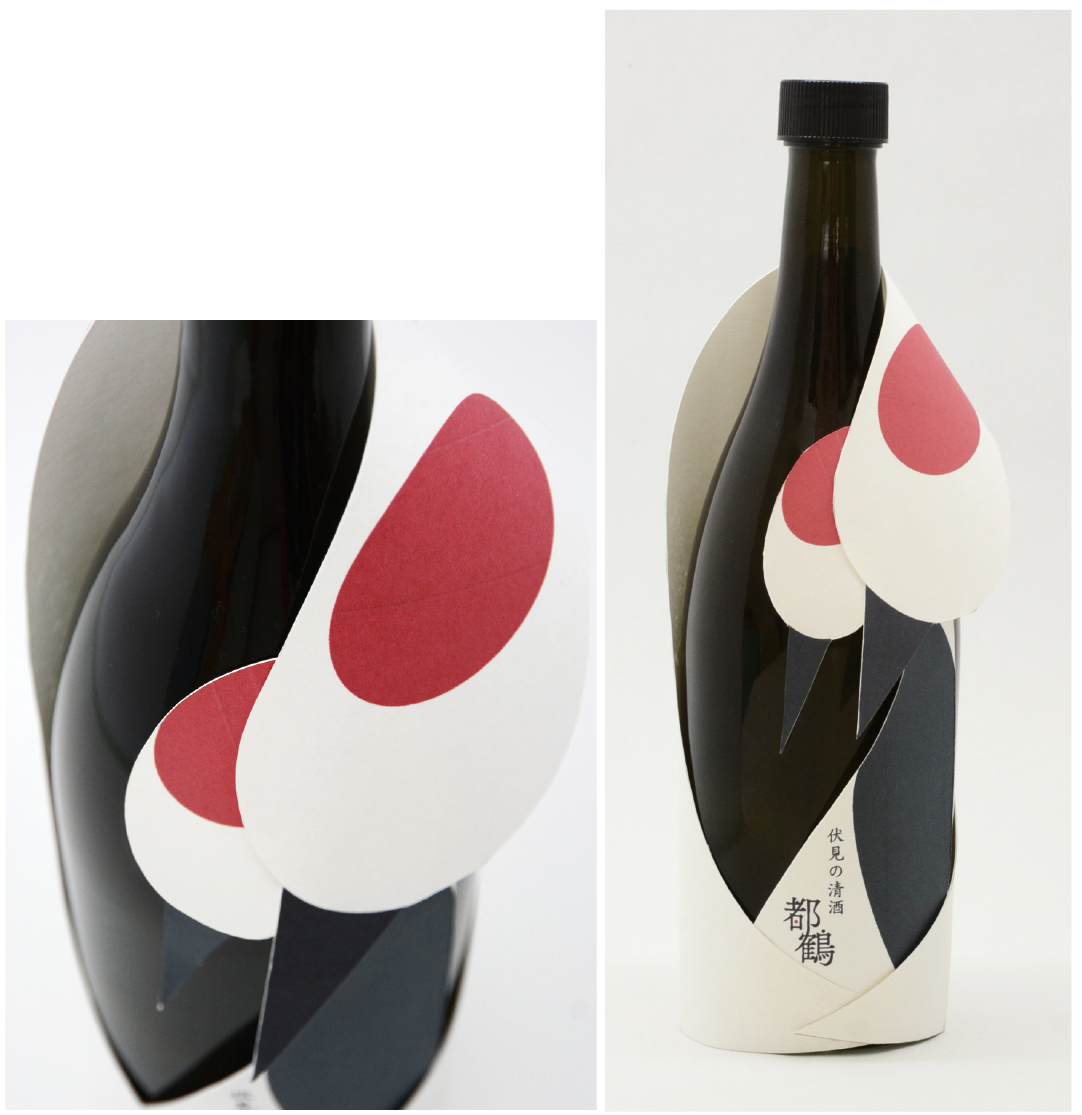 パッケージは鶴が瓶を抱きしめている様子を表現しています。また、ラベルにも鶴を大きく配置しており、パッケージの鶴がもう一羽の鶴を抱きしめているようにもなっています。羽根でそっと大切に包み込むように、丁寧に真心を込めてお届けしたい、という思いを込めてデザインしました。