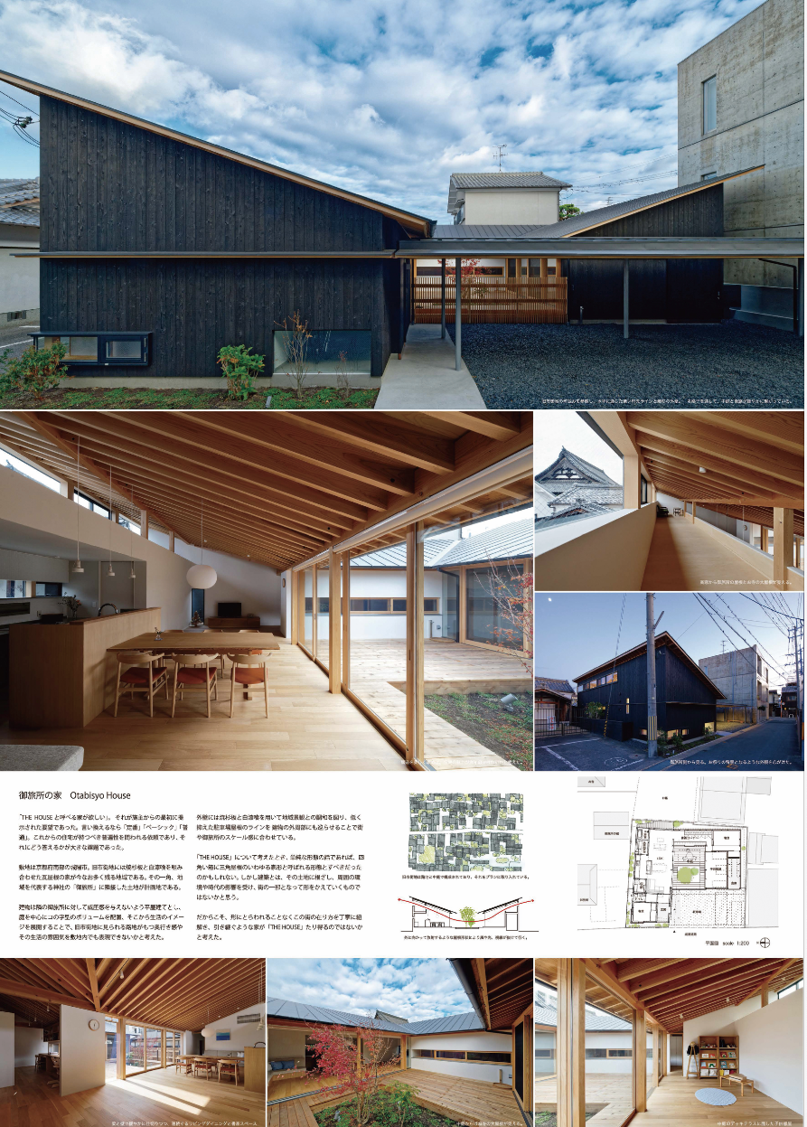 作品説明 | 敷地周辺は焼杉板と白漆喰を用いた家が今なお多く残る旧市街地であり、神社の祭事で神輿を一時的に奉安する場所である「御旅所」に隣接した土地が本計画地である。 「THE HOUSE」と呼べる家が欲しい」。それが施主からの最初に提示された要望であった。言い換えるなら「定番」「ベーシック」「普通」。それにどう答えるかが大きな課題であった。 単純な形態の話であれば、四角い箱に三角屋根のいわゆる家形と呼ばれる形態とすべきだったのかもしれない。しかしながら建築とは、その土地に根ざし、周囲の環境や時代の影響を受け、街の一部となって形を変えていくものではないかと思っている。人によっては当たり前ともとれるこの考え方は、住宅の量産化がすすむ現代ではとりわけ意識されづらくなっているように思う。 だからこそ、形にとらわれることなく、この地域が持つ路地の奥行きとその風景、素材から感じられる歴史の積み重なりや、人々が歩く目線における街のスケール感。それらを拾い集め再解釈し、この住宅にその要素を落とし込こんでいる。 形は様々であれ、街の魅力を引き継ぐ「THE HOUSE」であってほしいと願っている。 |