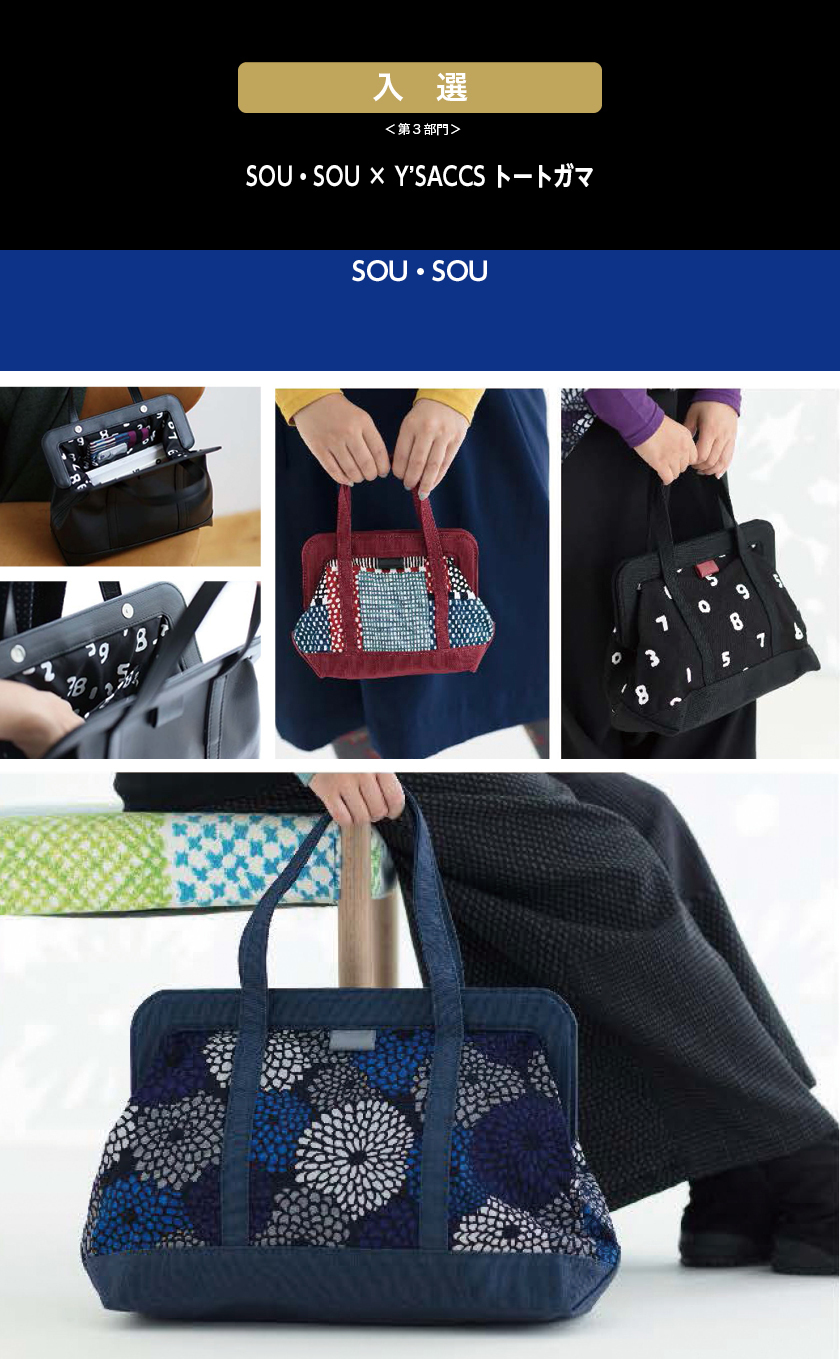 がま口とトートバックが融合したデザイン。2箇所の強力マグネットボタンでしっかり口が閉まります。1986年に誕生した京都のBAGブランド「Y’SACCS」とのコラボレーションライン。