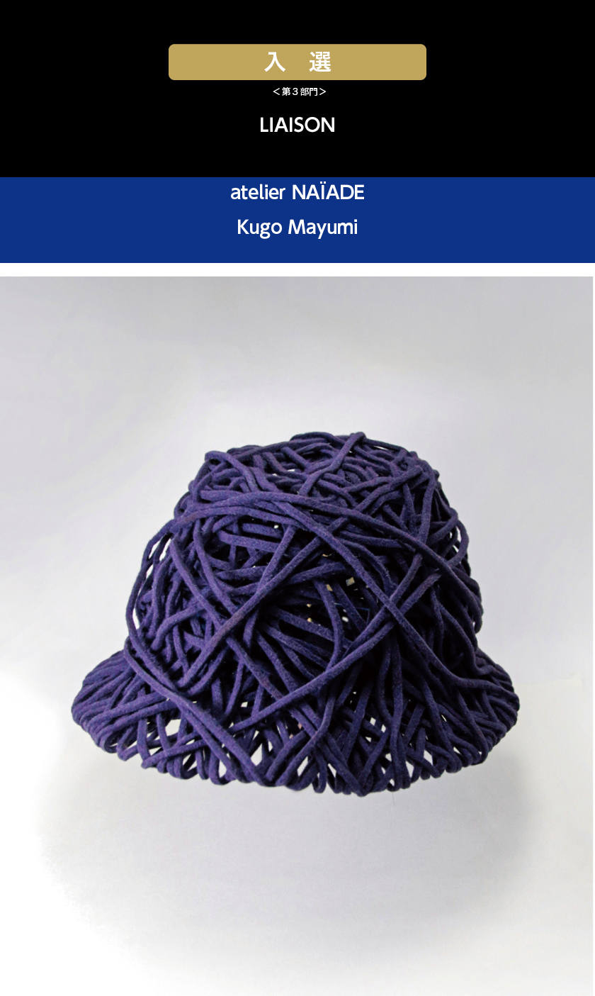 この作品はファーフェルトの帽体をテープ状に切って、つないで(LIAISON)、チップに絡めて、たのしい帽子に。