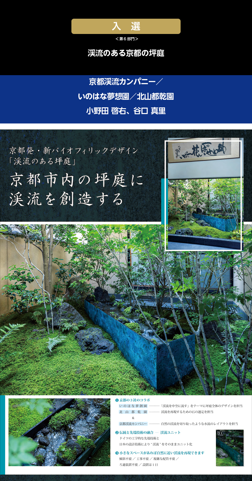 しっとりと落ち着いた坪庭をどこにでも持ち込めるよう渓流をユニット化することで実現。この坪庭のデザインのメインは、渓流(レイアウト 谷口真里)