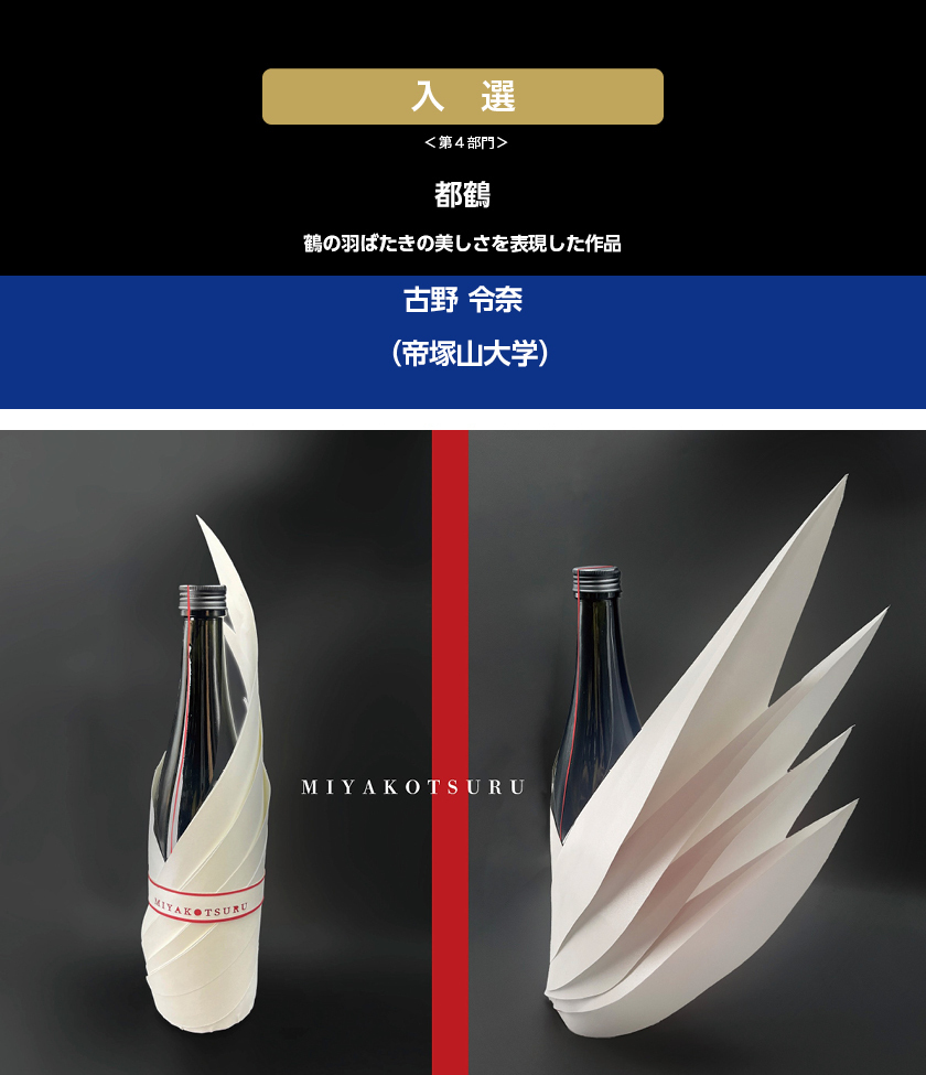 瓶そのものを鶴に見立て、帯をとると羽が華麗に広がります。