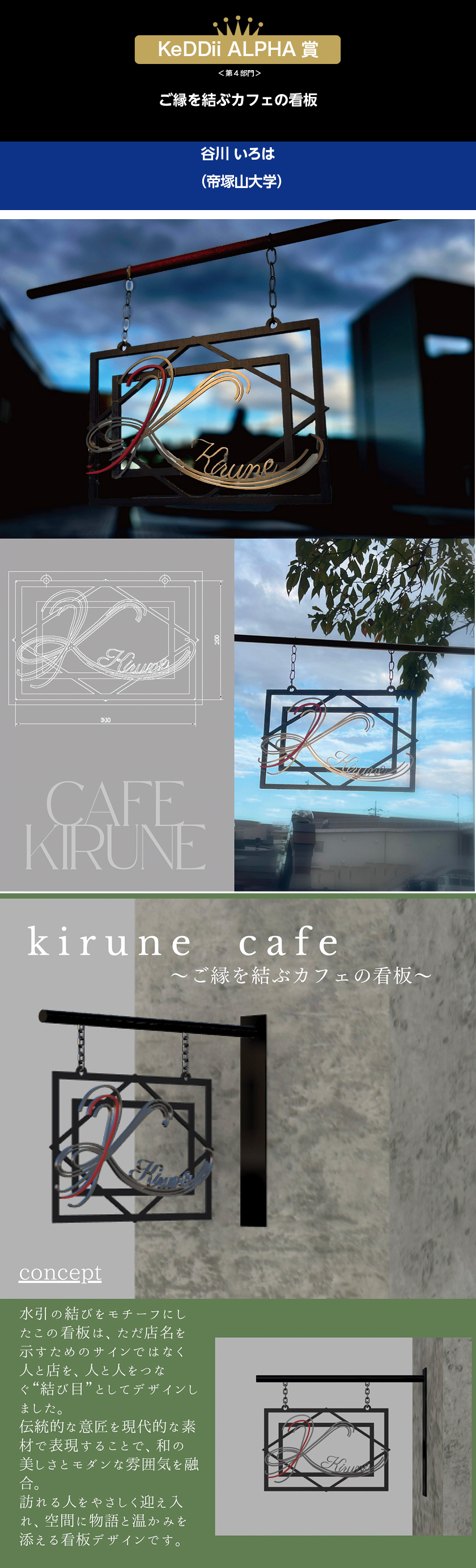 水引の結びをモチーフにしたこの看板は、ただ店名を示すためのサインではなく人と店を、人と人をつなぐ“結び目”としてデザインしました。